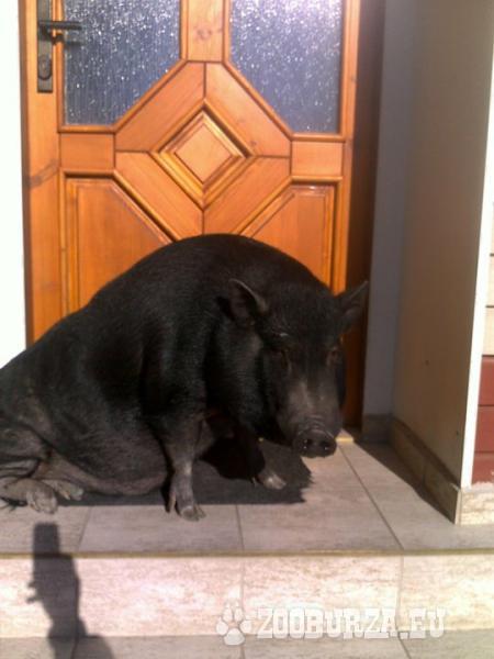 Popis: Daruji černé Göttingenské miniprasátko. Stáří 9 let, prasátko je přerostlé, má odhadem 100 kg. Pouze jako mazlíčka a do dobrých rukou. Je společenské, čistotné, zvyklé na ostatní zvířata, kastrované. Darujeme i se zateplenou boudou. Bohužel z rodinných důvodů s námi už dále nemůže být. Více info po telefonu.