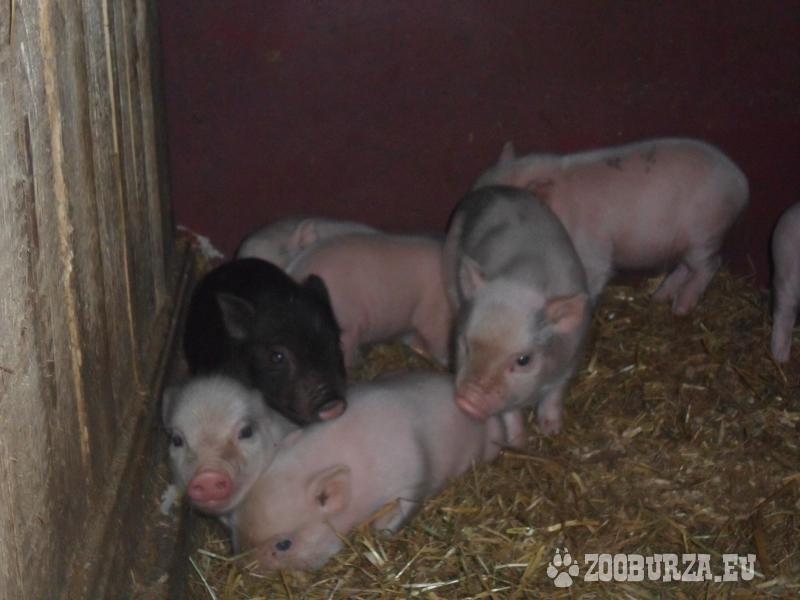 Popis: Nabízím chovná Gottingenská prasátka narozená 3.7.2013 Kdo bude mít zájem,může si prasátka rezervovat a dojed i se mrknout.Jsou nenáročná na chov a chytrá.Od narození mají v genech.že kadí a čůrají na jedno místo.Jsou pastevecká,takže strava je tráva.My jsme přidávaly šrot a zbytky,aby se jim dařilo. Obvykle by mělo dorůstat váhy kolem 20-30 kilogramů, váha ale nakonec může být klidně i vyšší. Není proto výjimkou, když z miloučkého tříkilového dětského prasátka vyroste 70kilový cvalík.(Naše mají přes 60kg)Je jich celkem 10. 1černé a ostatní růžové. Odběr by bylmožný kolem začátku září.Tel:603533626 Jsme z Chomýže u Bystřice pod Hostýnem.(ČERNÉ A 4RŮŽOVÉ,JSOU ZADANÉ)