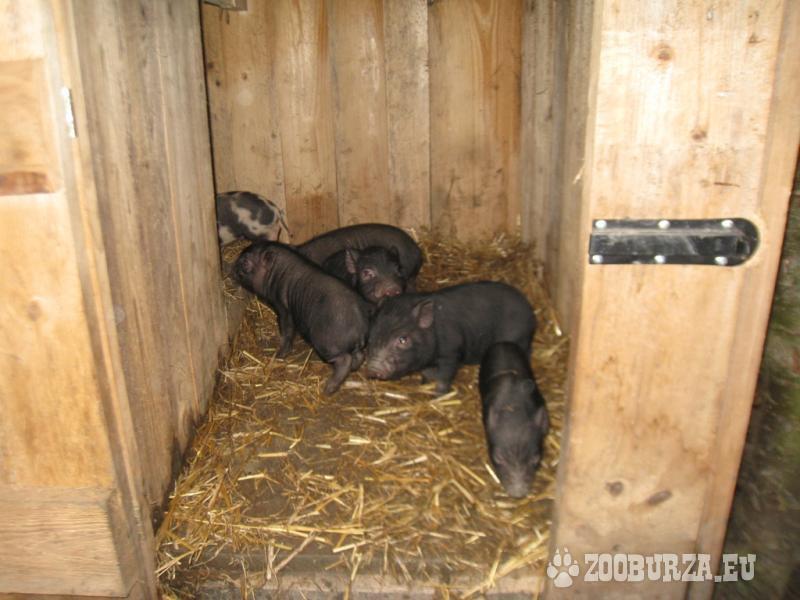 Popis: Prodám Göttingenská prasátka narozená 1.11.2014.Výběr z 9 selátek - kluků a holek (8 černých,1 puntíkaté – dvě černá jsou již rezervovaná).Odběr možný od poloviny prosince.Sviňka 600 Kč,kanec 500 Kč.