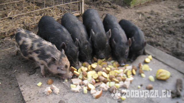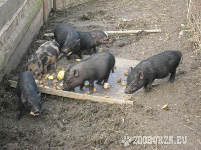 Popis: Prodám 4 měsíční Göttingenská prasátka narozená 1.11.2014.Výběr ze 6 selátek – třech kluků a třech holek (5 černých,1 puntíkaté).Prasátka jsou nenáročná na chov a většinu dne se pasou na zahradě.Vyrostla na zahradě ve venkovním výběhu v zateplené boudě.Odběr možný ihned.Bachyňka 600 Kč,kanec 500 Kč.