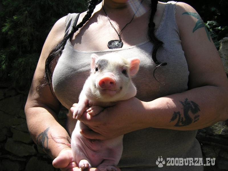 Popis: Dvorní zookoutek nabízí odběru kvalitní čipovaná selátka čistokrevných Göttingenských miniprasátek z vrhů 76 a 77. Rodiče pocházejí z našeho dlouholetého chovu, kdy se prošlechťováním miniprasátek zabýváme již 13 let. Selátka rostou 3 roky. Podívejte se na web dvornizookoutek.cz pod Miniprasátka, rozklikněte jednotlivé vrhy, najdete tam ceny, fotografie pohlaví selátek a foto rodičů. Čipování a očkovací průkaz je v ceně selátka. Cena zohledňuje léty prověřenou kvalitu. Čím menší miniprasátko, tím vyšší cena. Odchováváme již sedmé generace z několika chovných linií. Při vážném zájmu prosím pište, nebo volejte. Závazná rezervace oproti záloze, nebo odběr ihned. Jsme spolehliví chovatelé.