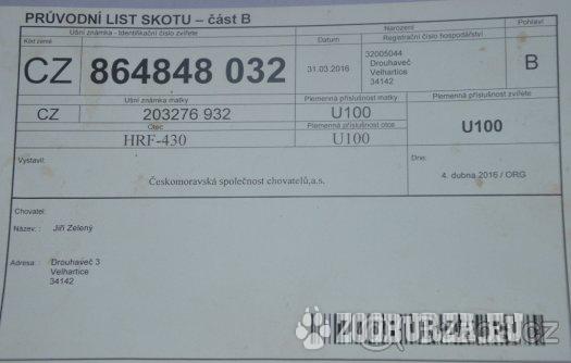 Popis: plemenný býk HRF730 narozen 31.3.2016, na jaře 2017 uznán do plemenné knihy, 100% březost, důvod prodeje - kupuji simentála, původ Farma Drouhaveč - Jiří Zelený (vyhrává celostátní soutěže)