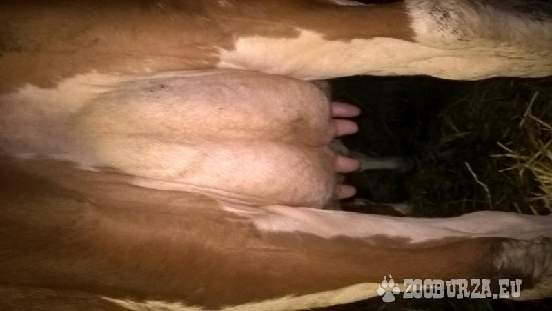 Popis: Prodám rodinnou kravku, velice hodná, po prvním teleti, nyní zjištěna po Camembert - kombi Normandský býk. Její první dcera k vidění. Zvyklá na ostatní zvířata ovce kozy atd. První porod naprosto bez problémů, spontánní. Má výrazné říje. Velmi měkká na dojení, šlo by dojit i ručně, v současnosti dojena strojem. Perfektní zdravé vemeno, s mohutnými závěsnými vazy, předpoklad mnoha laktací. Původ C61 R39. POUZE do domácího prostředí. Při rychlém jednání 10% sleva z ceny na dopravu