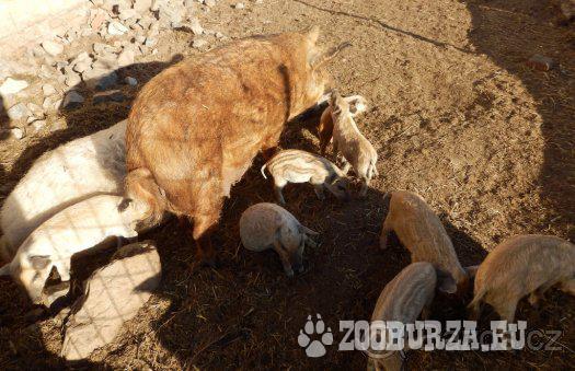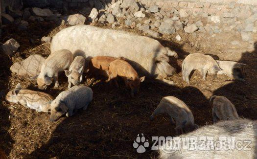 Popis: Prodám letošní čistokrevná selata mangalice z vlastního chovu. Rodiče žijí celoročně venku ve venkovním výběhu (rodiče samozřejmě k vidění u nás), jedná se o odolné a nenáročné prase (sežerou všechno) . Selátka jsou zvyklá na venkovní výběh a krmení travou. Vhodná i na chov. Mangalice rostou skoro jako normální prase. Maso mangalic je velice žádáné a kvalitní. Sádlo obsahuje velké množství tzv. dobrého cholesterolu. Cena cca 1100 - 1500 (záleží na váze a stáří). V případě zájmu je možnost dohodnout i výměny za obilí atd. Máme kanečky i svinky. Plánovaný odběr v polovině měsíce října. Aktuální do smazání.Tel: 739625357