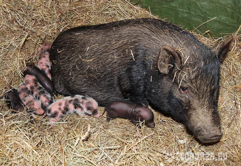 Popis: Dobrý den, prodám selátka narozená 29.9. Mamka Gottingenské miniprasátko, taťka pastevní kříženec. Selátka jsou černá a růžová s černými flíčky.